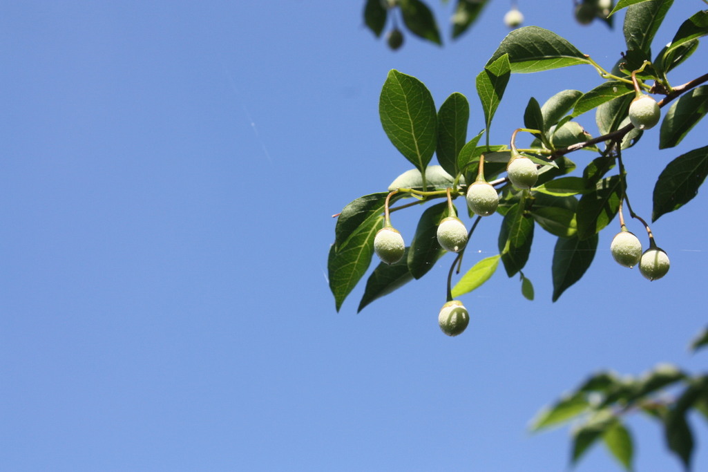 澄んだスカイブルーの 空に、エゴの実がよくあってますね~(*^^*)
