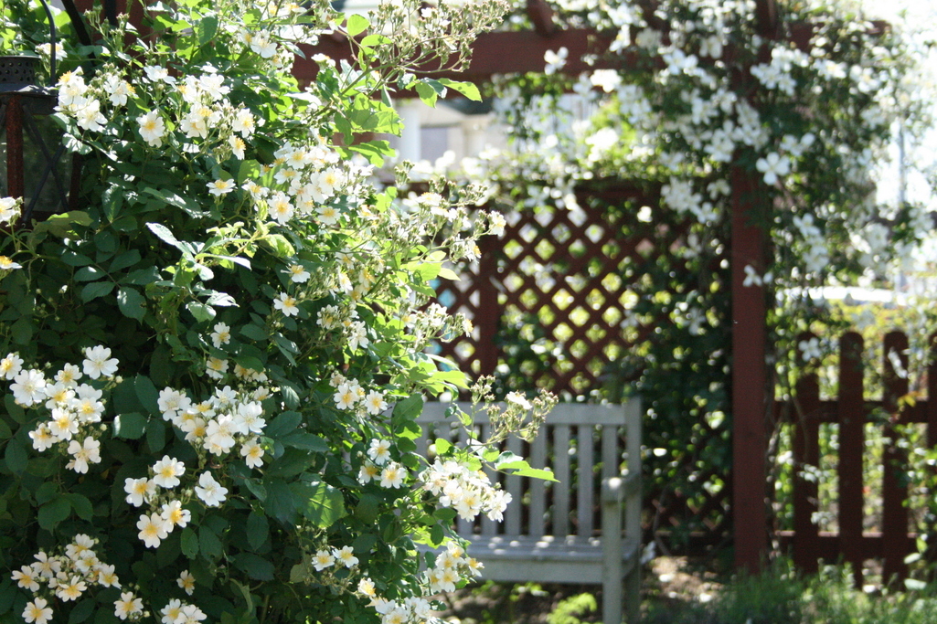 このベンチで、ゆったり薔薇を眺めたいな〜♪