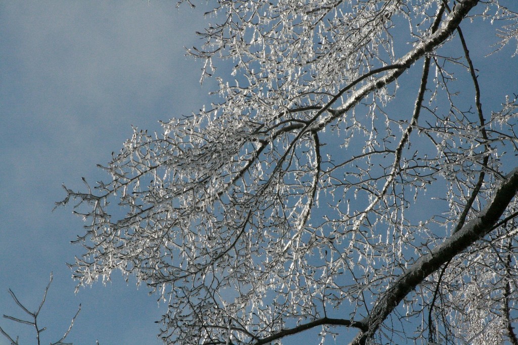 春に向けて蕾がつき始めていたコブシの枝も、すっかり氷で覆われています