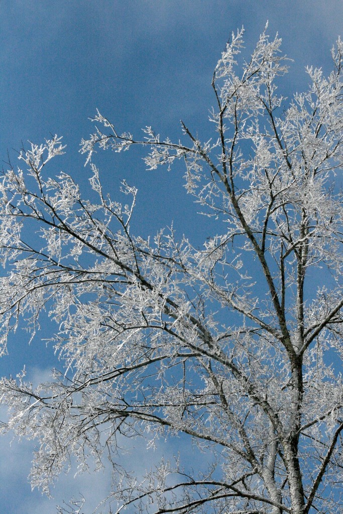 雨氷の降った翌日は青空が広がり、凍った枝がキラキラ光って本当に綺麗