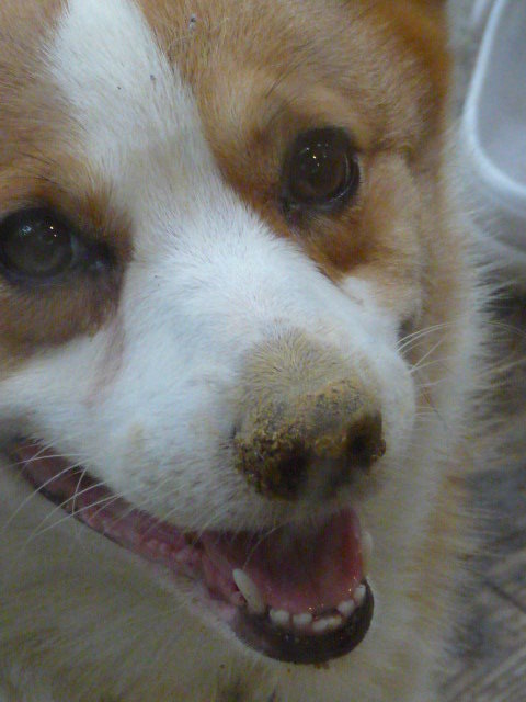 鼻がドロドロ~(笑) ペロッと舐めるのも忘れて、何やってたんでしょうね~、きっと楽しいことしてたんですよ♪