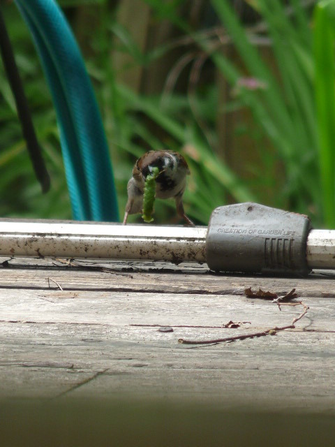 たまたま室内から写真を撮れたんで、雀に気づかれませんでしたっ!庭に巣箱を作って、もっと野鳥に住んでもらいたいもんですわぁ~っ、wendyさんっ!