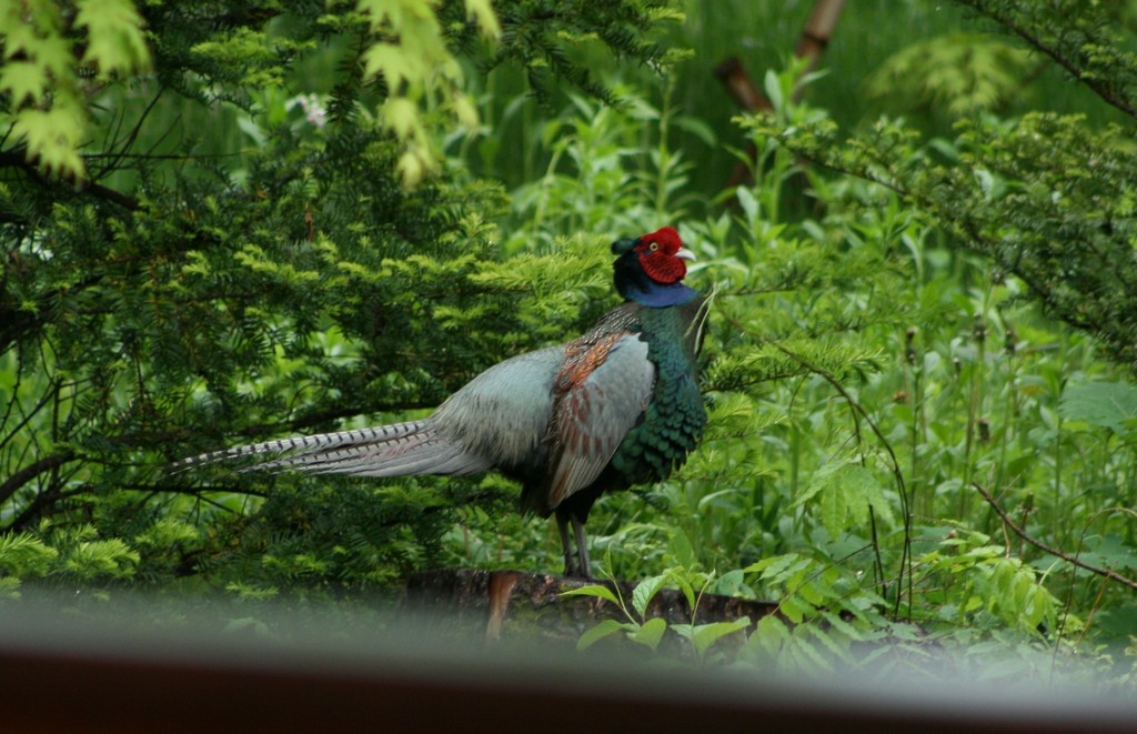 お庭にキジが来るんですね~♪すごくりりしいキジさんですね。