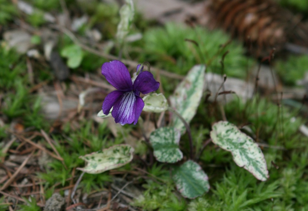 斑入りの葉が、紫のすみれをよりエレガントに見せてくれますね。