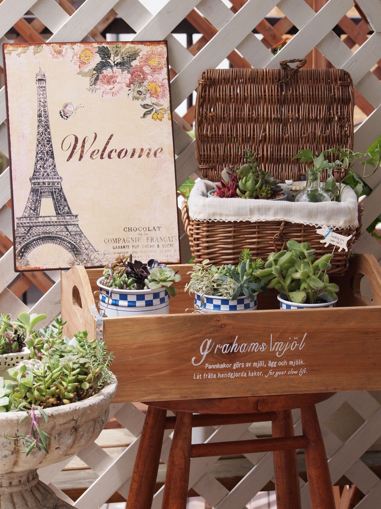 多肉もいっぱいあるんですね。飾り方がとてもオシャレで雑貨屋さんのようです。エッフェル塔、本当にお好きですね~^^