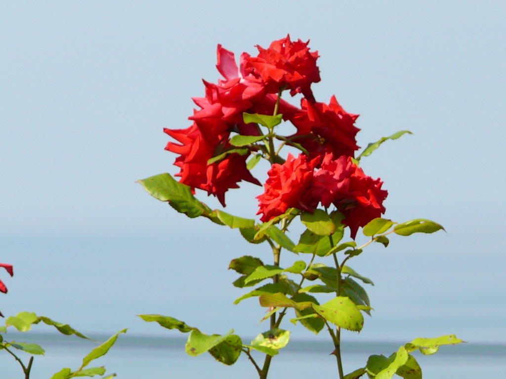 剣咲きのバラ気位高く咲き誇っているように見えます。