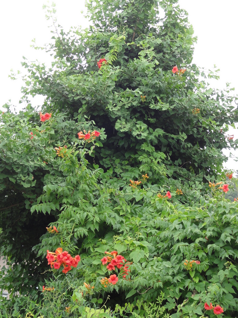 実家周辺を散歩していたら、大きな銀杏の樹にノーゼンカズラがしっかりしがみついていました。