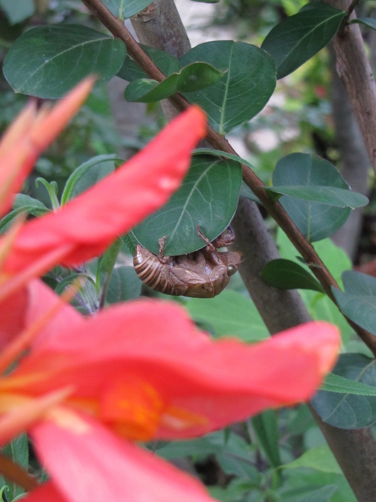 カンナとサルスベリとセミの抜け殻。 夏ですね~^^