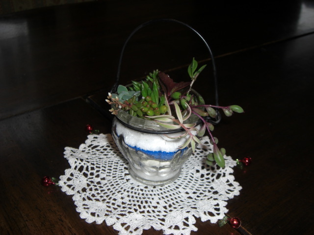 ガラスの器にカラ―サンドで涼しく植え付けました