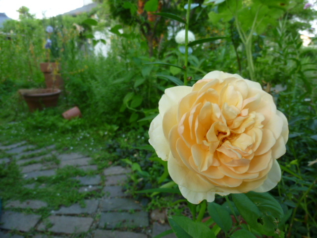 こういうアングルいいですね!バックに広がるお庭の中で、一輪がより美しく輝いて見えます(*^^*)