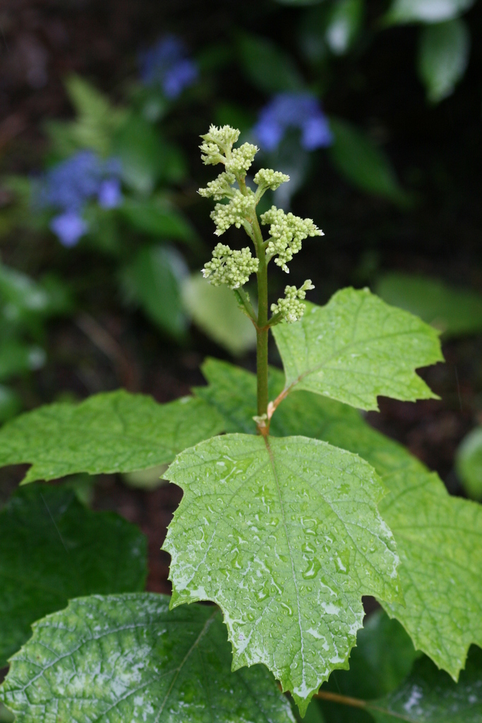 今年買ったカシワバアジサイを地植えして咲き終わった花を切っておいたところ、新しい花芽がつきました。今から無事咲いてくれるのかしら。