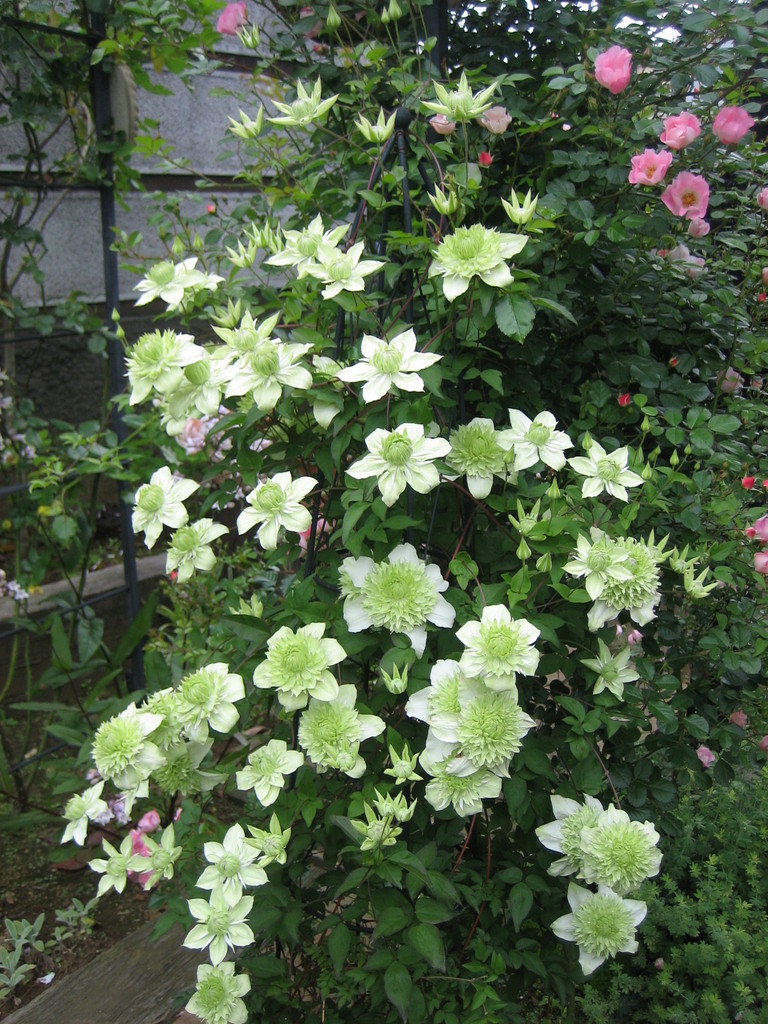 わ~!私も気になっていたクレマチスです。花がたくさんで見事ですね!