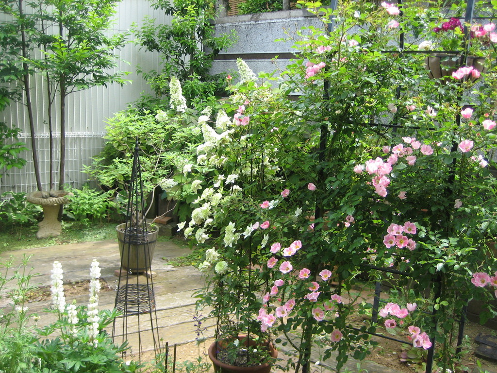 クレマチスとバラ、柏葉アジサイとルピナス、ベストコ-ディネイトですね