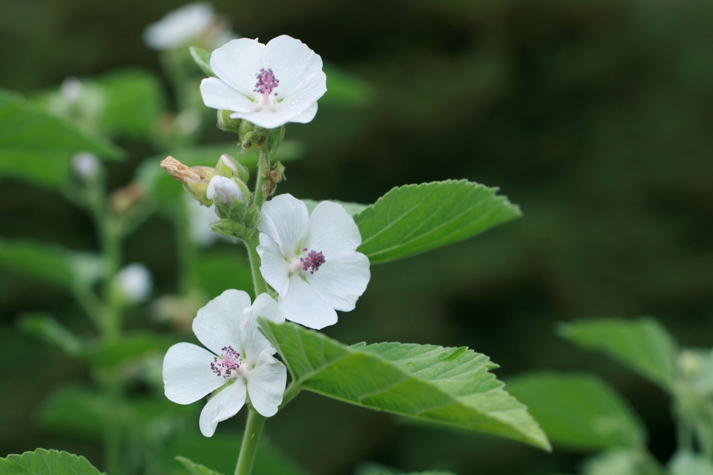我家のマーシュマローはまだ花芽がついていませんが、こうしてみてみると白くて可憐な花ですね。