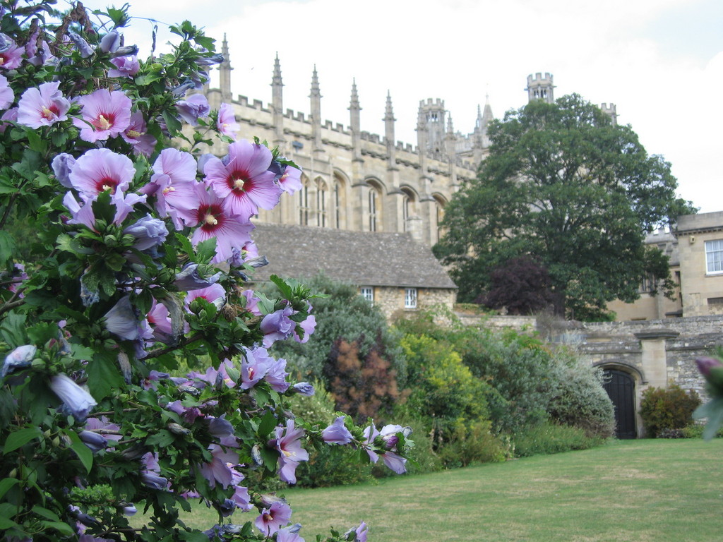 ムクゲ?タチアオイ?バックの建物かっこいい~