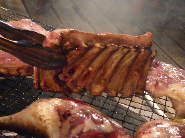 これねっ、骨を裂くと肉汁がドバッっ・・・と出るんですよぉ~!それを口のパクって入れて噛むとぉ~口の中で燻した木々の味が肉そのもののうま味と共に飛び散るんんですっ!ほんでもって、最初わぁ~ビールでグビっ(゜-゜)♪♪ほんでもってもう一口食べて赤ワイン・・・フルボディーねっ・・・をグビっ(゜-゜)♪♪至極ぅぅぅぅぅぅぅっ(゜-゜)