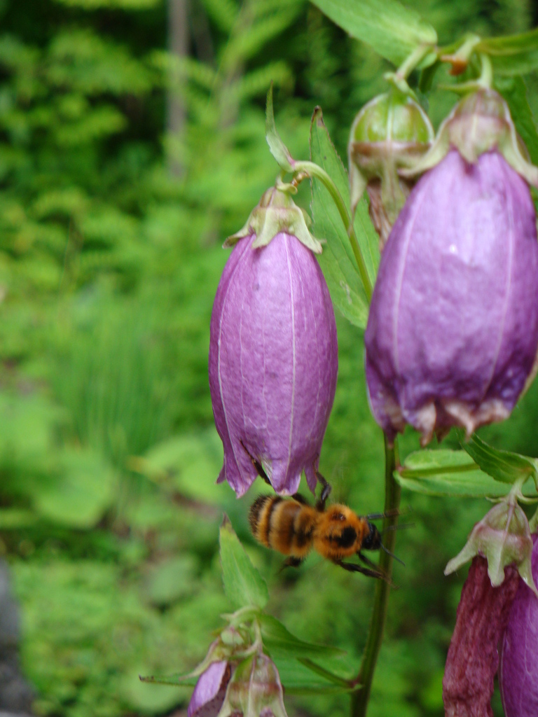 野山に咲く薄紫のホタルブクロです。この森ではホタルの代わりにまぁるい蜂がたくさん来ます。