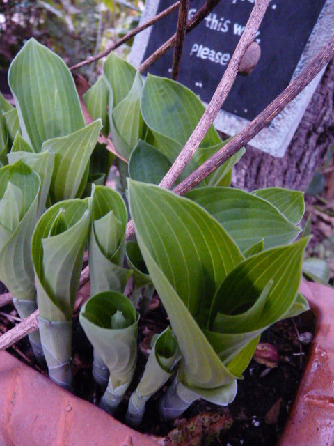 に植えたホスタがにょきにょきと萌芽しています。至極の春の時間です♪♪