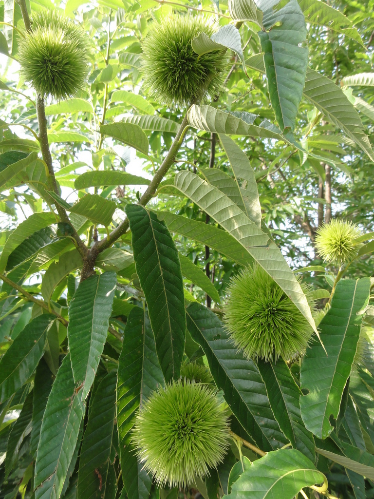 夏のクリ、気にしたことなかったのですが綺麗なグリ-ンでイガイガが魅力ですね。テ-ブルに飾ってもいいくらいですね。
