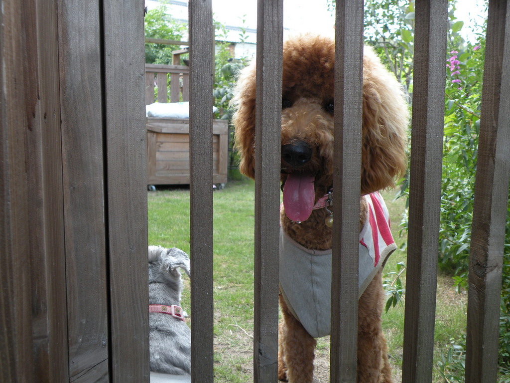 うちにもクーチャン以外にチョコラブとキャバリアのお兄ちゃん達が2匹いるのですが、庭に出られるのはおちびちゃんのクーチャンだけです。かわいそうだけど庭をメチャメチャにされてしまうので・・・。