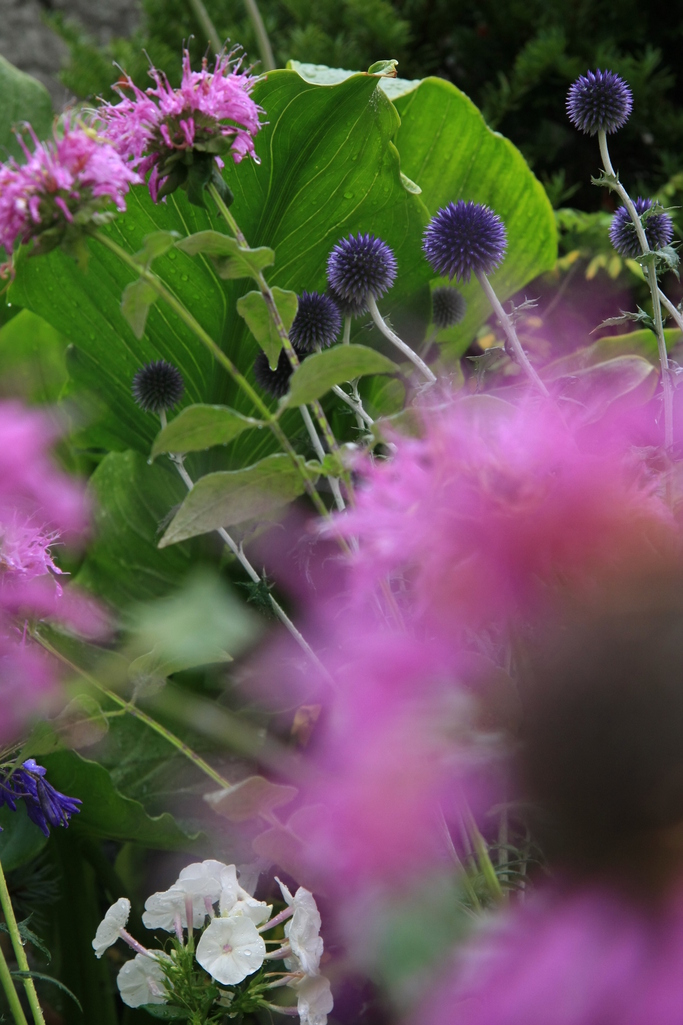 ビューワで拝見!モナルダのピンクとルリタマアザミのムラサキ!チョコッと見えるフロックス?絶妙な色合わせで素敵ですね~