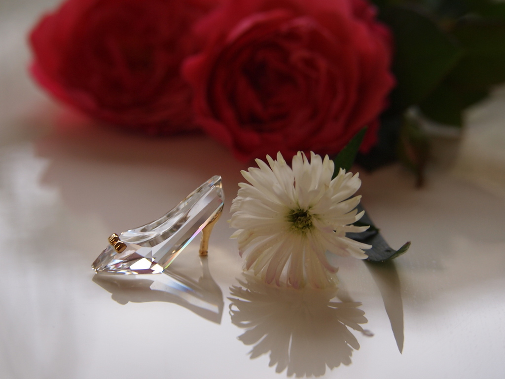 このクリスタルの靴、綺麗ですね!!キラキラに弱いんです。素敵な一枚ですね!