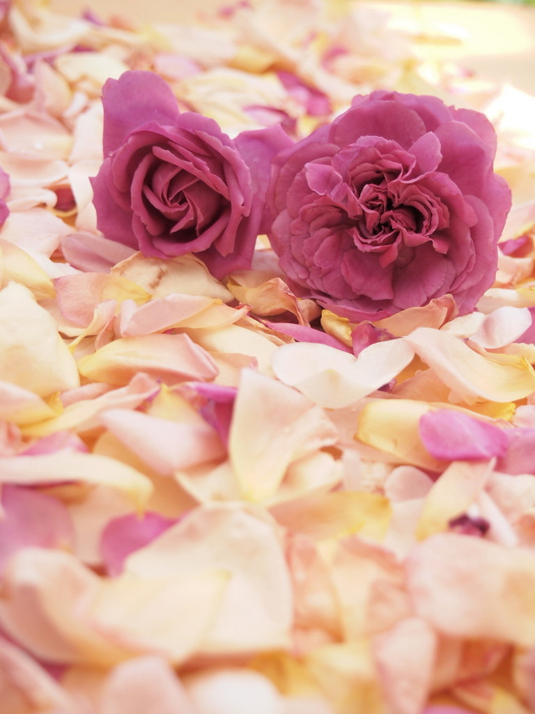 素敵な薔薇の絨毯♡♡花びらの色合わせも♡癒しをありがとうございます(^_−)−☆