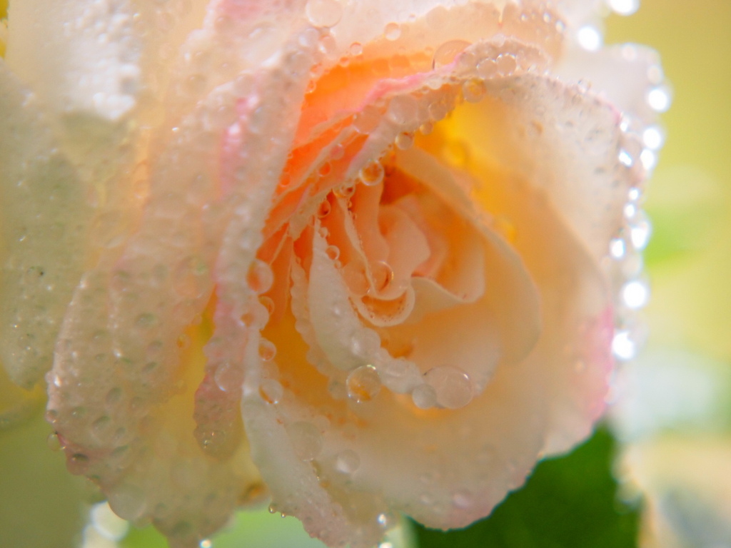 雨の日の薔薇もいいですね。アプリコット色?すてき