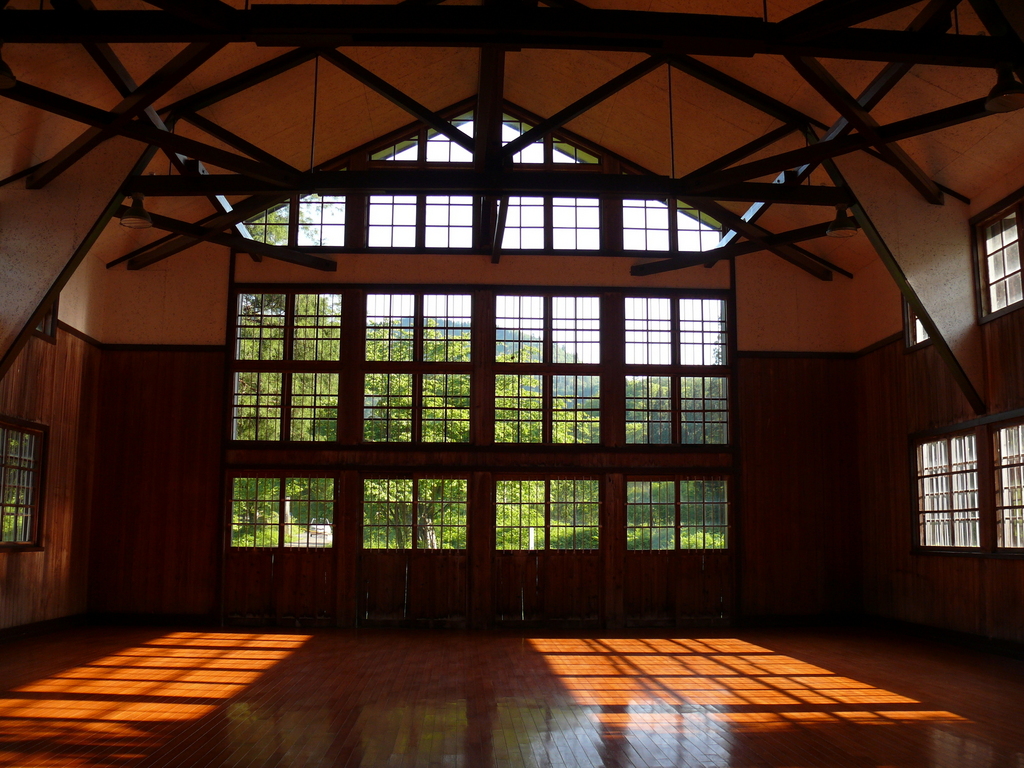 体育館というより…礼拝堂みたいな厳かな感じがします…窓から差し込む光がとても素適ですね(^-^)