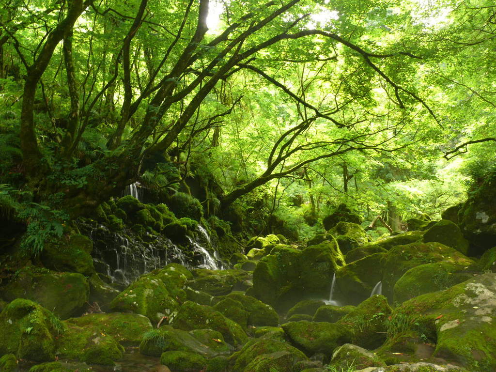 木々の緑、コケの緑、そこに湧き水の流れ、清涼な雰囲気が伝わってきます。