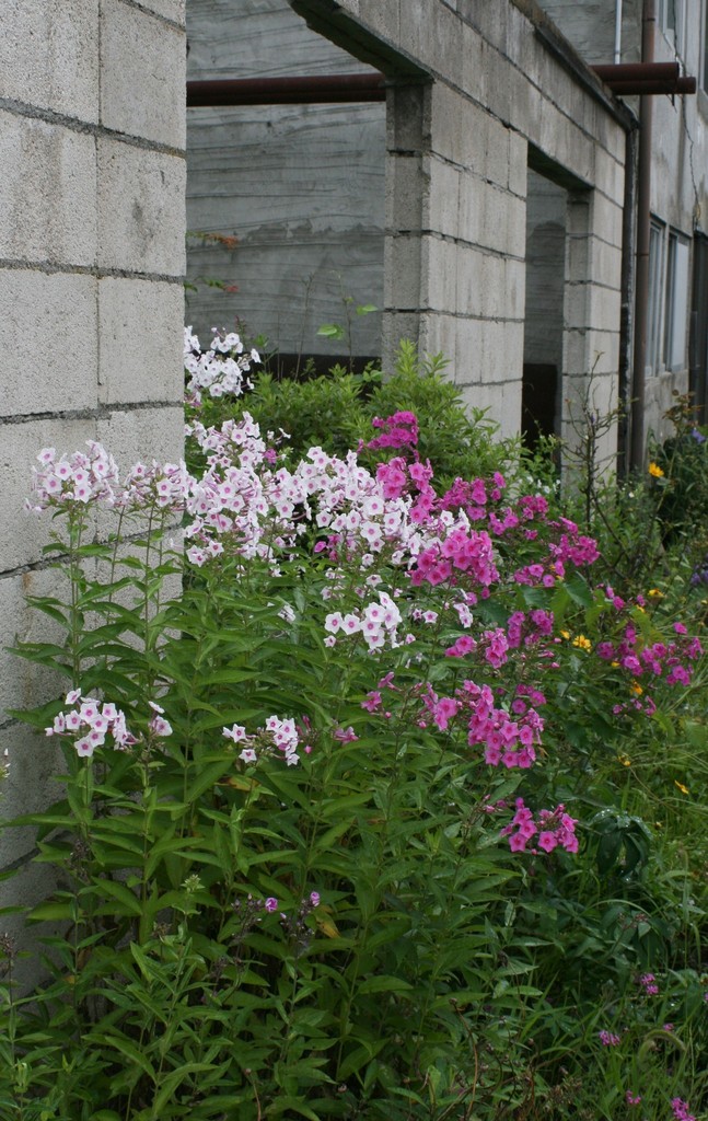 よく散歩するコースにコンクリート・ブロック造りの廃墟がありますが、毎年今の時期になると綺麗なお花畑になります。