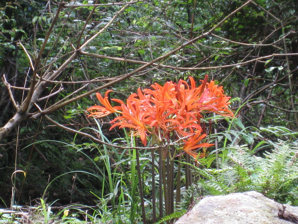この花は始めてみました。彼岸花のオレンジ色に見えますが・・・。