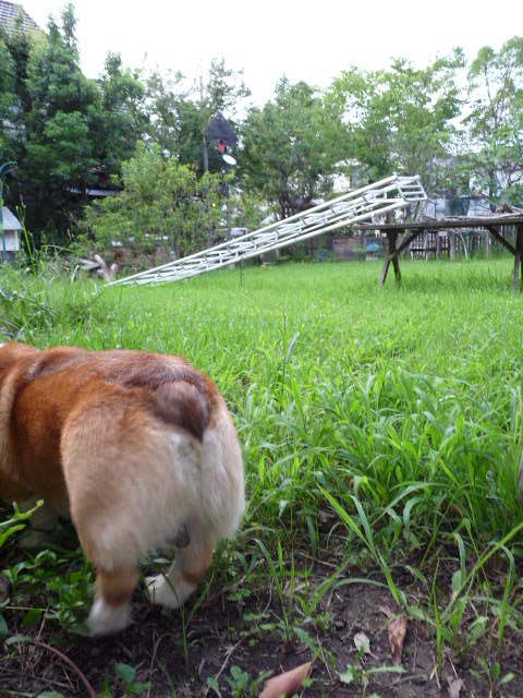 そうそう、コーギーのお腹がつかえちゃうから、はやく草刈してくださいなあ。
