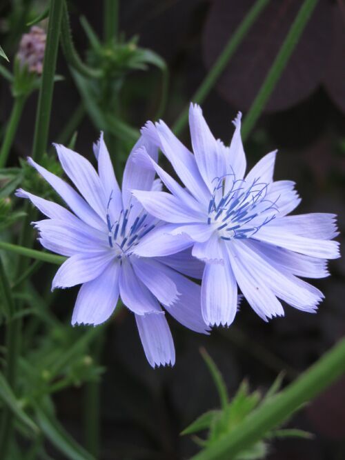 可愛い花ですね~(*^^*) チコリってあの食べるチコリとは違うんですよね・・・葉っぱが違いますものね。ホントに可愛い♡