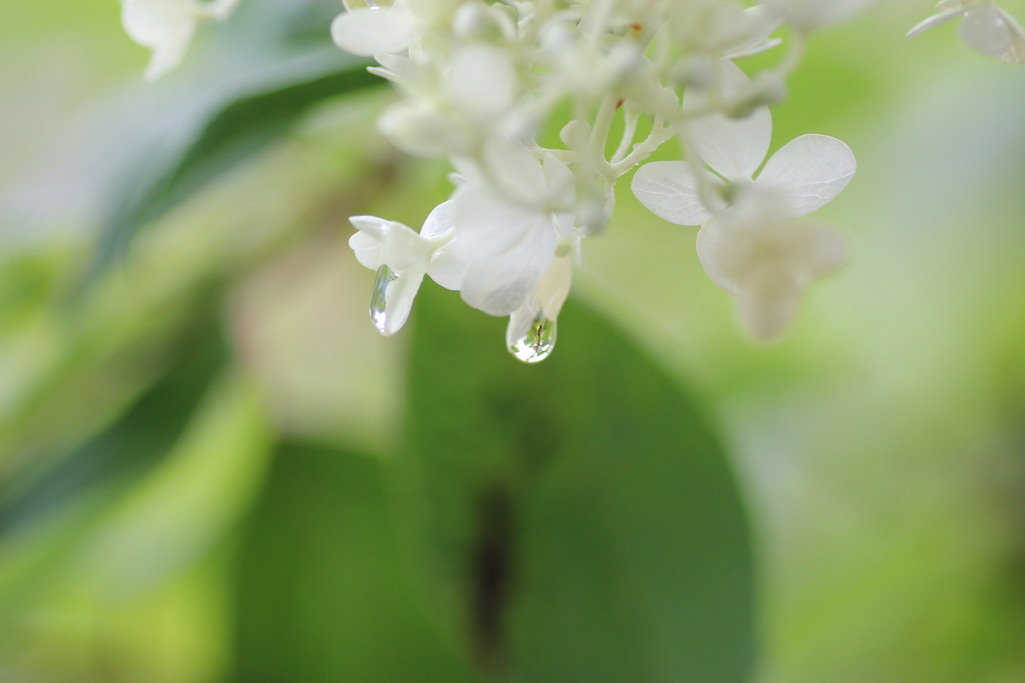 あじさいに水滴、バツグンの相性ですね。