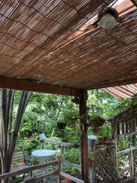 よしずって・・夏って感じでいいですよね・・上をみると・・灯りもついているんですね・・工事用のとかではなく・・可愛い灯り❤・・それと・・よくみると植木鉢のせるやつの上に・・かぶさってる・・それはなんですか・・ブリキ??・・