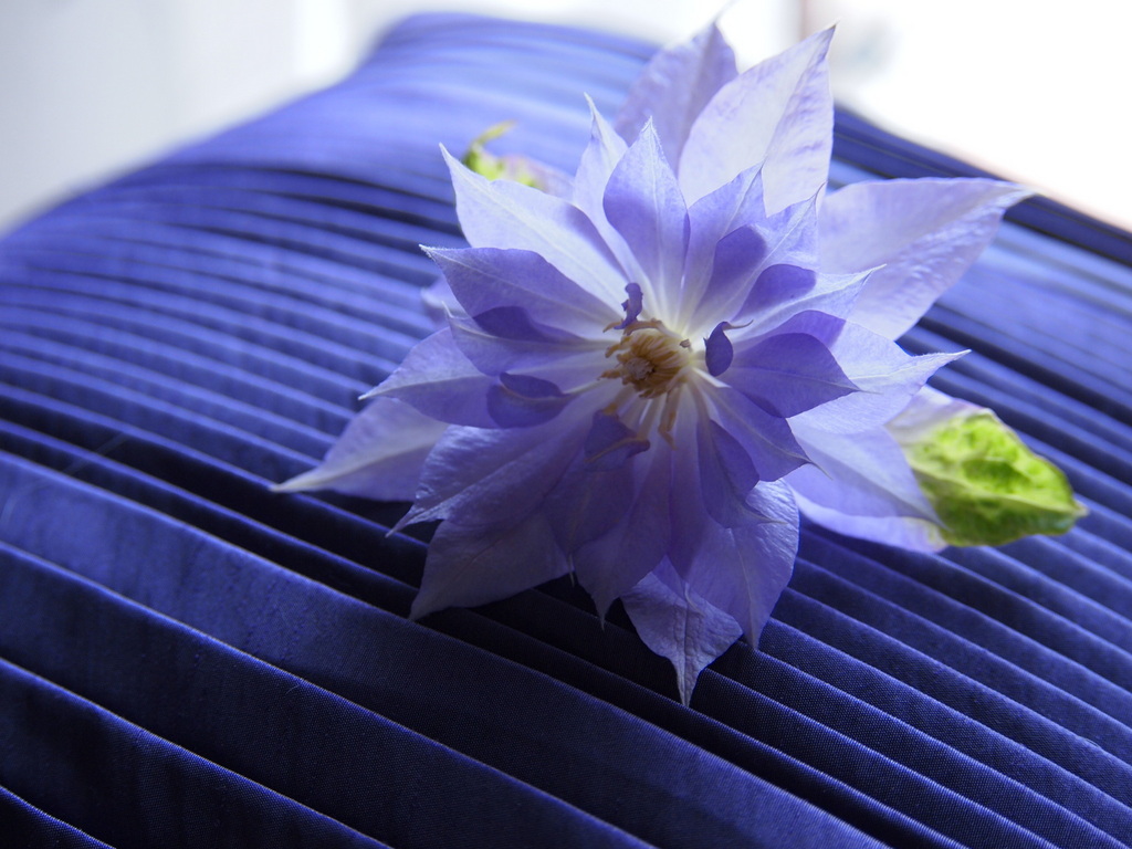 会えて良かったですね。一度枯れても見守ってくれている愛情を感じて咲いてくれたのでしょうね。紫のクッションとの構図も素敵!