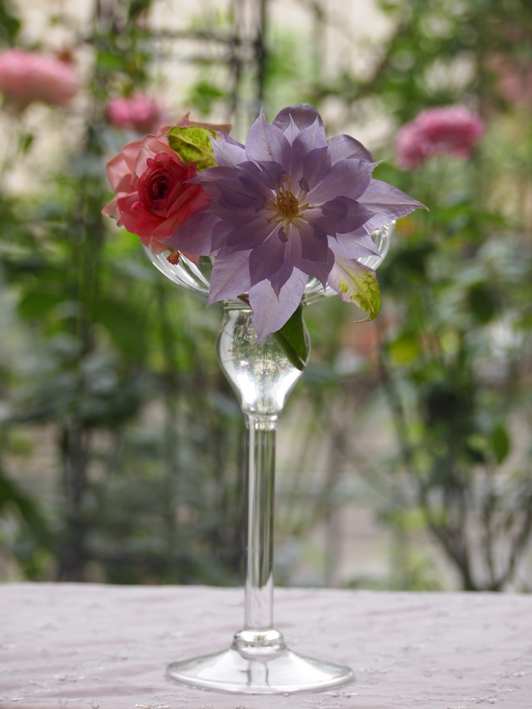 グラスと水のきらめきが一層花を引き立たせているようですね。
