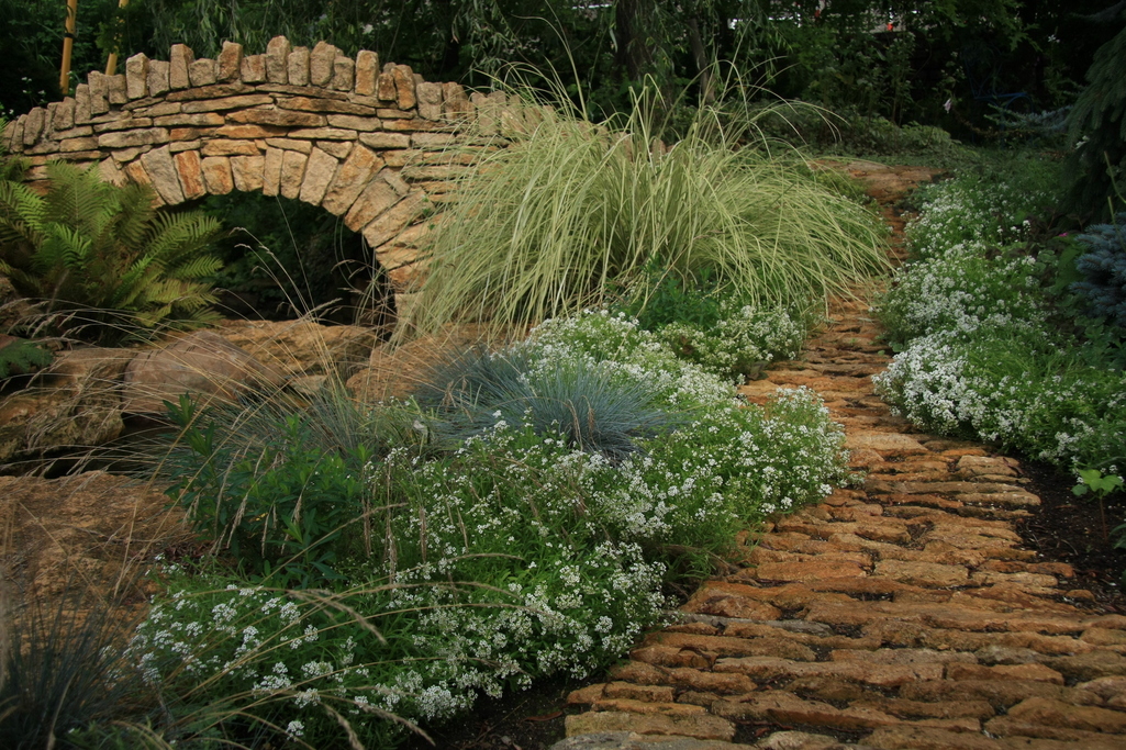 アリッサムが小径に咲きこぼれていますね♡グラス達も素適(^-^)