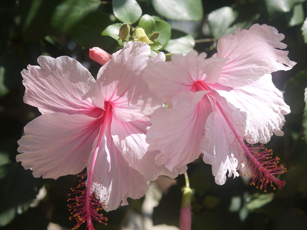 上品なピンクのハイビスカスですね。