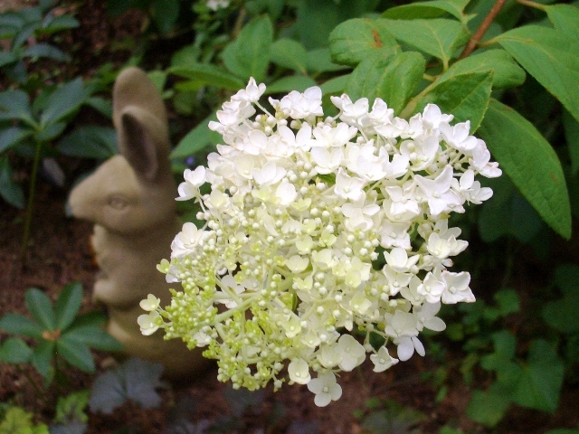 ホント、かわいらしい1枚ですね^^ うさぎちゃんに白花が似合います^^ ピラミッドアジサイが今でもきれいにさいていてうらやましぃ~。