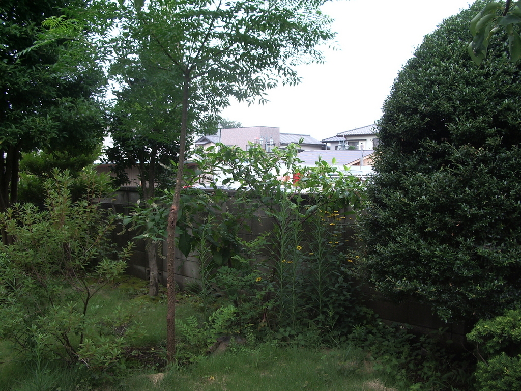 分かり難いですけどひょろっと伸びた高砂百合の後ろが洋種ヤマゴボウです。 花が咲き実をつけはじめました。 今で、たかさ2m位あります。 今まで家では雑草扱いをしていたのですがあるホテルのロビーに活けてあったのを見てから考えが変わりました。 それは雄大でモダンなフラワーアレンジメントでした。