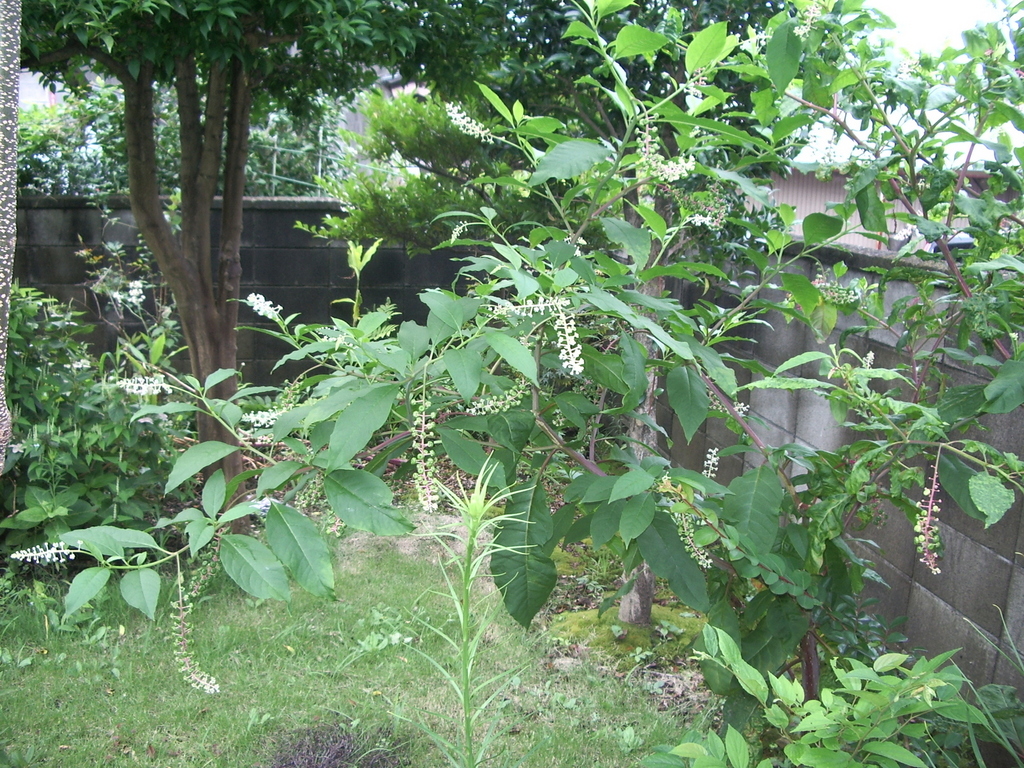 白い小さな花が咲き扁平で丸い小さな緑色の実をつけます。 大株になって5~6本の太い株立ちになっていましたがそれを2本に剪定しました。