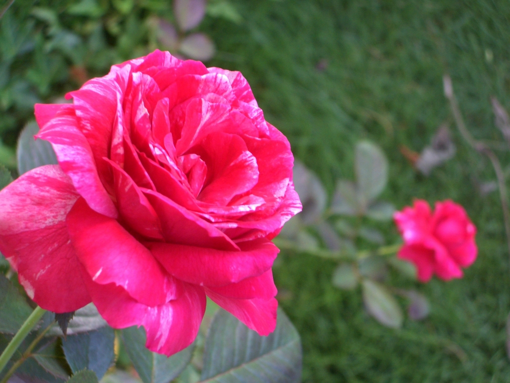 ピンクに白が混ざっている薔薇、素敵です。うっとりしますね。