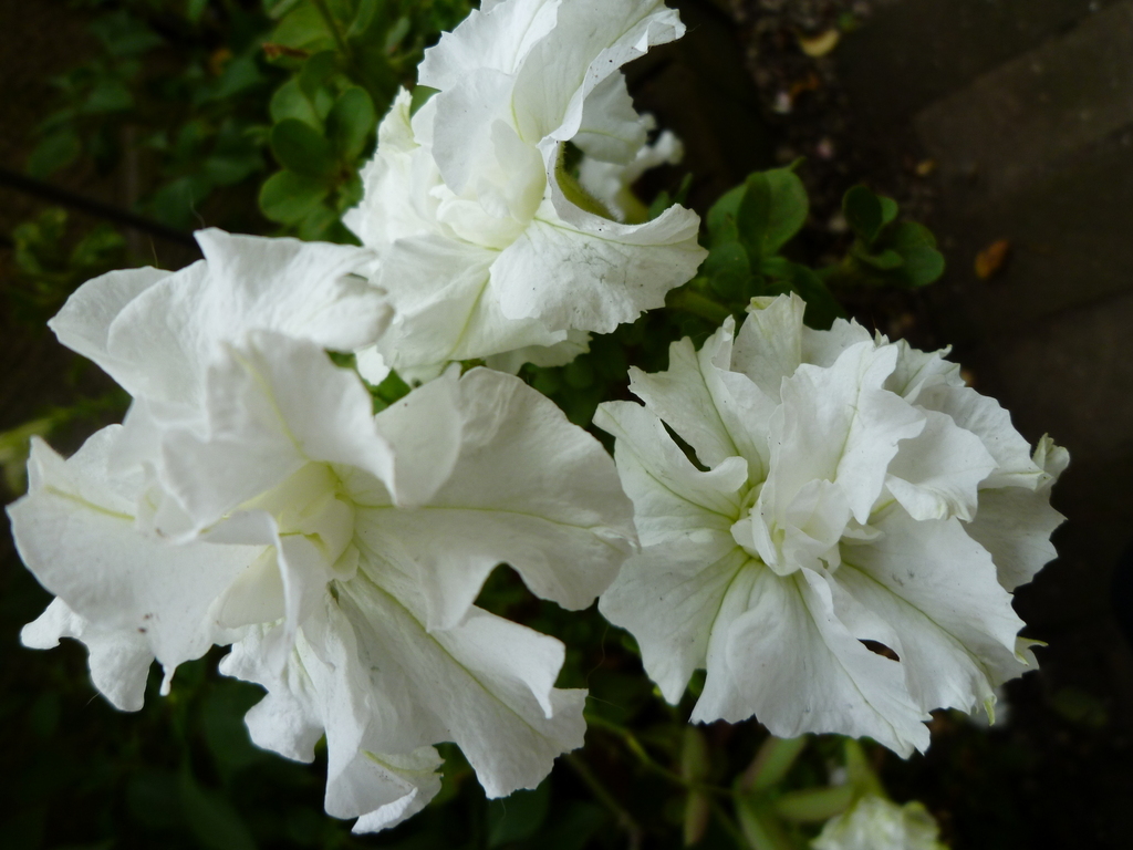 ダブルの真っ白なペチュニア、とてもきれいに咲いていますね。 最近湿度が高くて、うちではペチュニアが夏バテです。