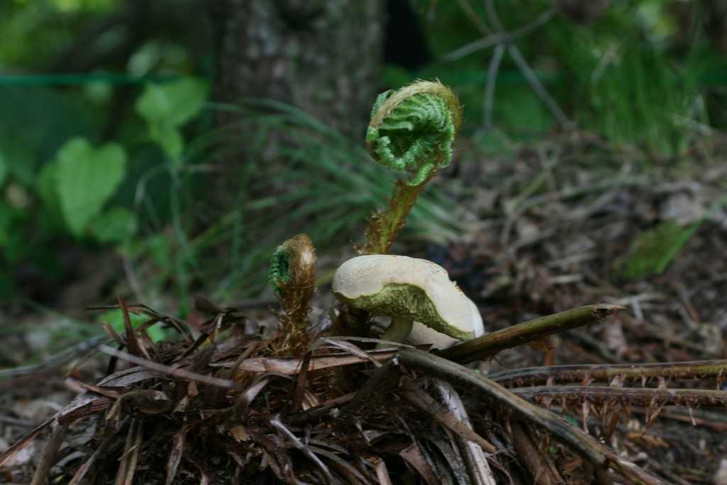 シダときのこの共生は良くあるみたいですよ。かわいいですよね。