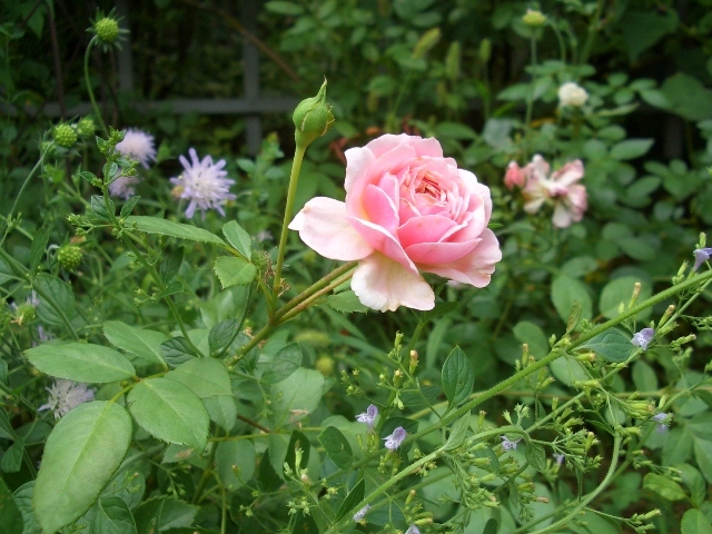 元気な一輪ですね!うしろの紫はスカビオサですか?私はいつも夏に枯らしてしまいます・・・。蕾もいっぱいで、バッチリ根づいていますね^^