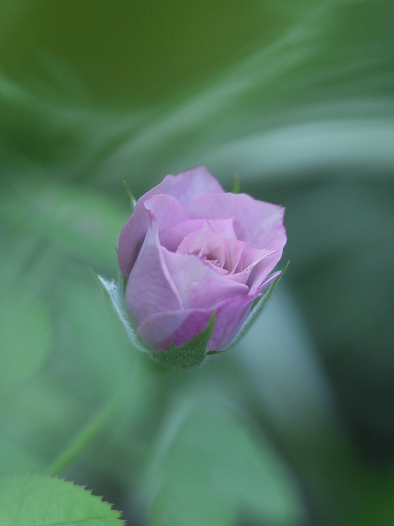 優しいグリーンの背景が、薄紫の薔薇を引き立てていますね。