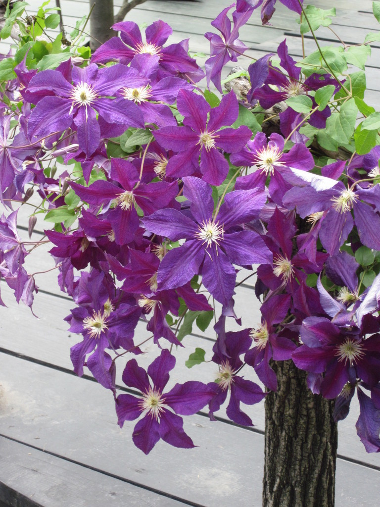 クレマチスの花束みたいですね。紫の色もすばらしいですね。