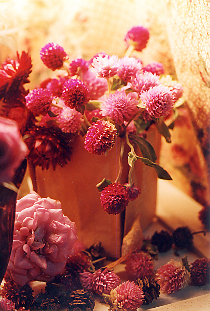 千日紅のイチゴのような色が好きです^^ カワイイお写真ですね♡ 千日紅はドライにしてもそのままキレイな色だからいいですよね~^^